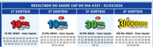 Neste domingo (1º/março) foi a vez da Edição nº 337 do Título de Capitaçização Saúde Cap fazer seus sorteios, que foi transmitido ao vivo pela TV Recorde de Rio Preto e pelo YouTube, com os seguintes ganhadores: